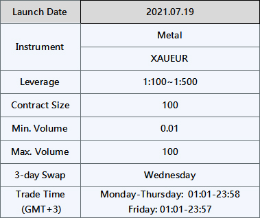 To provide a broader portfolio of products, Pacific Union will launch the new product of XAUEUR as per the date in the table below.